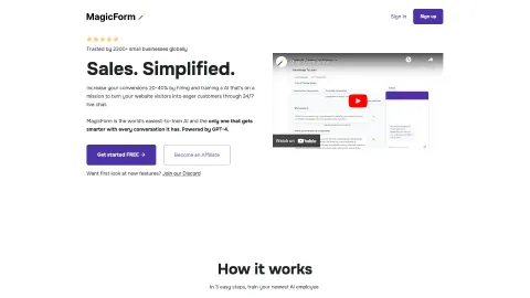 MagicForm AI supercharges lead generation by using an AI-driven system that qualifies, converts, and follows up with leads around the clock. The AI engages with website visitors, understands their needs, and directs them through a conversion funnel with personalized interactions. With its ability to learn from each interaction and adapt its responses, MagicForm AI optimizes lead generation processes by: